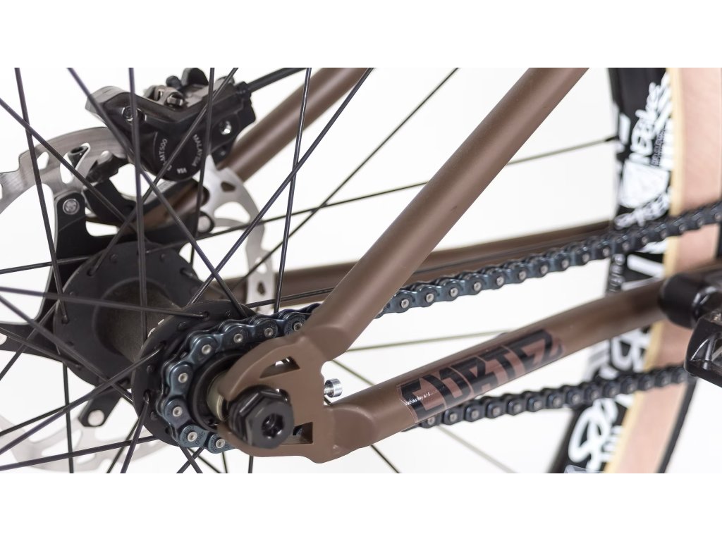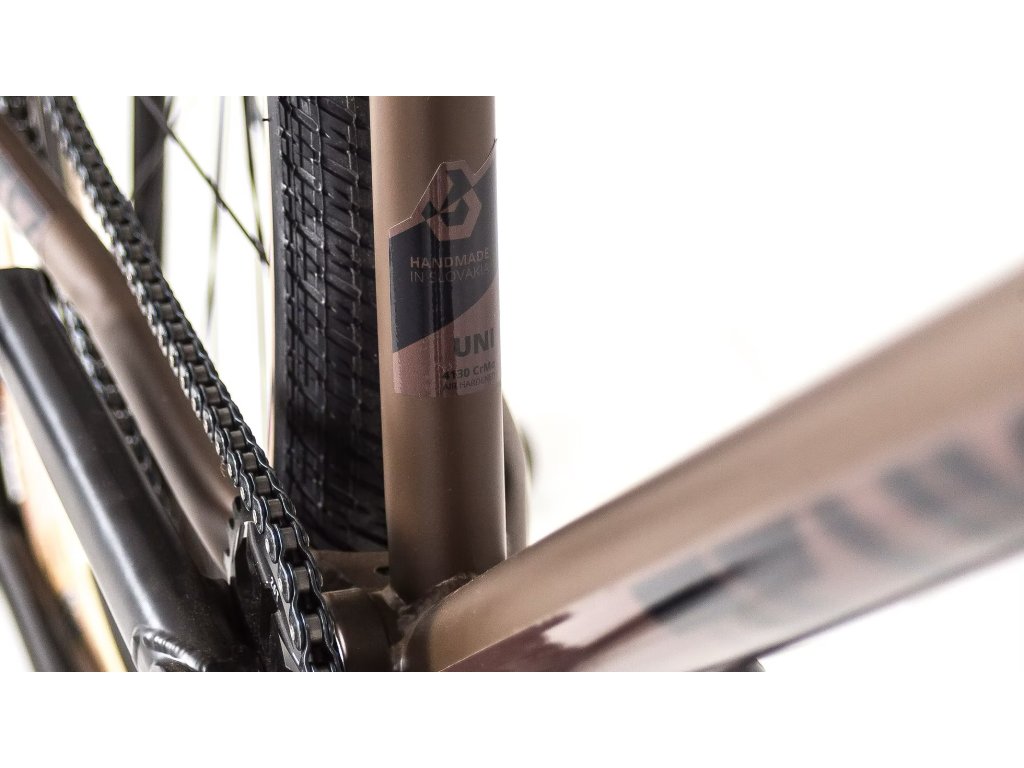 Keď si ideš bomby na betónovom pumptracku, trestáš lavičku v mestskom parku, alebo točíš beko na slopestylovom odpale, posledná vec na ktorú sa chceš sústrediť je či tvoj rám ustojí preletený dopad. Preto veríme oceli. Či to už tvoj rám pristane na šuter, betónový schodík, alebo železné zábradlie, 4130 CrMo oceľ používaná na drvenie skál v lomoch sa len poškrabe za uchom. Toto oceľové monštrum s extrémne krátkou zadnou stavbou a strmým hlavovým uhlom ťa šokuje svojou obratnosťou v momente ako to prvý krát zalomíš do klopky.